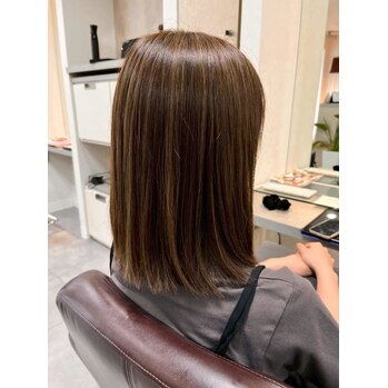 透明感カラーは、髪の赤みを和らげながら、まるで光をまとったような軽やかな質感に仕上げます。自然なツヤと透け感が出るので、肌も明るく見えますよ♪「友達から髪色を褒められました!」「ふんわり感が長持ちしてうれしいです」との声も多くいただいています。