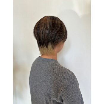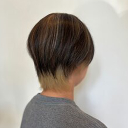 今回は、表面にハイライトと襟足にインナーカラーを組み合わせたデザインカラーをご紹介します!このヘアスタイルは襟足がキュッと締まっていて、首がより綺麗に見えるのでとても素敵です。