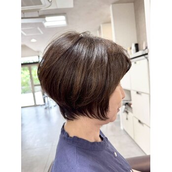 トップに自然なボリュームを出し、顔まわりを優しく包み込むショートスタイルはいかがですか?首元をすっきり見せつつ、丸みのあるシルエットで上品さと女性らしさを演出します!乾かすだけで形が決まるので、毎日のスタイリングもとっても簡単です。清楚で若々しい印象を叶えたい方におすすめです。