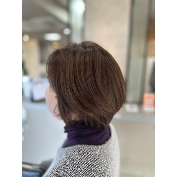 冬は乾燥で髪が広がりやすいですが、ショートボブならまとまりやすくケアも簡単。少しオイルをつけるだけで、キレイに整います!